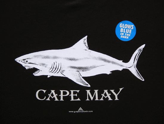 shirt glows light blue in the dark.