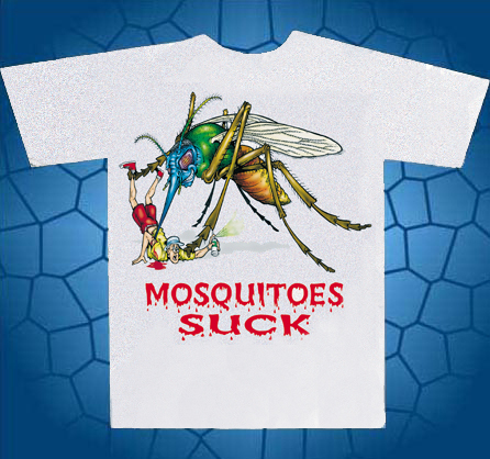 T-Shirt shows a large mosquitoe sucking the blood out of a tourist who