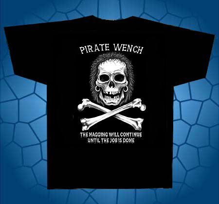 T-Shirt features a skull and cross bones with the saying "The nagging will